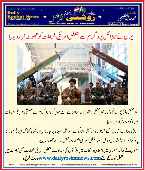 انٹرنیشنل (ڈیلی روشنی نیوز انٹرنیشنل )تہران: ایران نے اپنے میزائل پروگرام سے متعلق امریکی الزامات کو بڑا جھوٹ قرار دے دیا۔