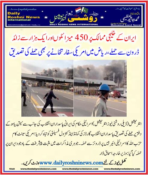 انٹرنیشنل (ڈیلی روشنی نیوز انٹرنیشنل )اسرائیلی حکام کی ایرانی پاسداران انقلاب کی جانب سے نیتن یاہو کے دفتر پر حملےکی تصدیق