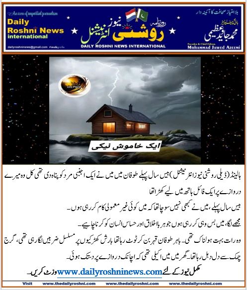 ہالینڈ(ڈیلی روشنی نیوز انٹرنیشنل )بیس سال پہلے طوفان میں میں نے ایک اجنبی مرد کو پناہ دی تھی کل وہ میرے دروازے پر ایک فائل ہاتھ میں لیے کھڑا تھا
