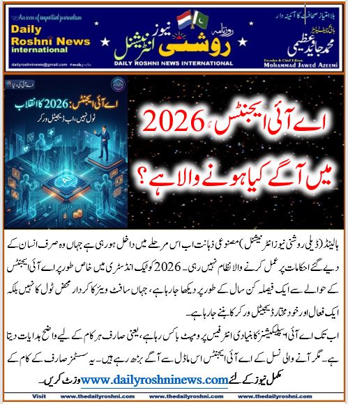 ہالینڈ(ڈیلی روشنی نیوز انٹرنیشنل )مصنوعی ذہانت اب اس مرحلے میں داخل ہو رہی ہے جہاں وہ صرف انسان کے دیے گئے احکامات پر عمل کرنے والا نظام نہیں رہی۔ 2026 کو ٹیک انڈسٹری میں خاص طور پر اے آئی ایجنٹس کے حوالے سے ایک فیصلہ کن سال کے طور پر دیکھا جا رہا ہے، جہاں سافٹ ویئر کا کردار محض ٹول کا نہیں بلکہ ایک فعال اور خودمختار ڈیجیٹل ورکر کا بننے جا رہا ہے۔