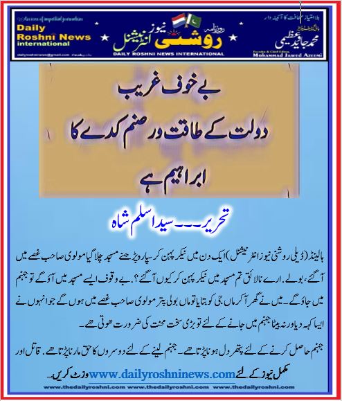 ہالینڈ(ڈیلی روشنی نیوز انٹرنیشنل ) ایک دن میں نیکر پہن کر سپارہ پڑھنے مسجد چلا گیا مولوی صاحب غصے میں آ گئے، بولے. ارے نالائق تم مسجد میں نیکر پہن کر کیوں آ گئے؟.