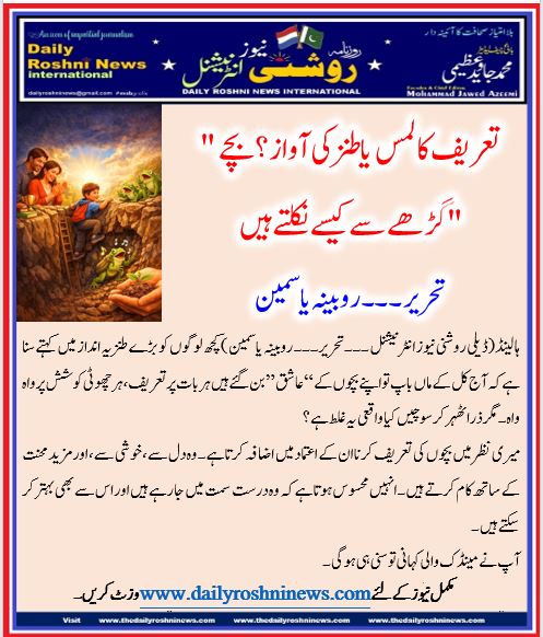 ہالینڈ(ڈیلی روشنی نیوز انٹرنیشنل ۔۔۔تحریر۔۔۔ روبینہ یاسمین )کچھ لوگوں کو بڑے طنزیہ انداز میں کہتے سنا ہے کہ آج کل کے ماں باپ تو اپنے بچوں کے “عاشق” بن گئے ہیں ہر بات پر تعریف، ہر چھوٹی کوشش پر واہ واہ۔