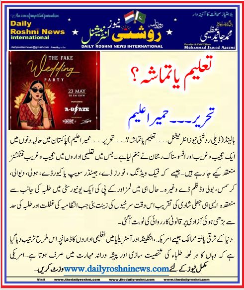 پاکستان میں حالیہ دنوں میں ایک عجیب و غریب اور افسوسناک رجحان نے جنم لیا ہے ۔جس میں تعلیمی اداروں میں عجیب و غریب فنکشنز منعقد کیے جا رہے ہیں۔جیسے کہ فیک ویڈنگ ، نو رز ڈے، جینڈر سویپ یا کیورڈے، ہولی، دیوالی، کرسمس، بولی وڈ فلم ڈے وغیرہ ۔ حال ہی میں لمز اور کے پی کی ایک یونیورسٹی میں طلبہ کی جانب سے منعقدہ ایسی ہی جعلی شادی کی تقریب اس وقت سرخیوں کی زینت بنی جب انتظامیہ کی غفلت اور طلبہ کی حد سے بڑھی ہوئی آزادی پر قانونی کارروائی کی نوبت آگئی۔