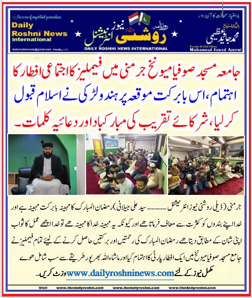 جامعہ مسجد صوفیا میونخ جرمنی میں فیملیز کا اجتماعی افطار کا اہتمام ، اس با برکت موقعہ پر ہندو لڑکی نے اسلام قبول کر لیا ، شرکائے تقریب کی مبارکباد اور دعائیہ کلمات ۔