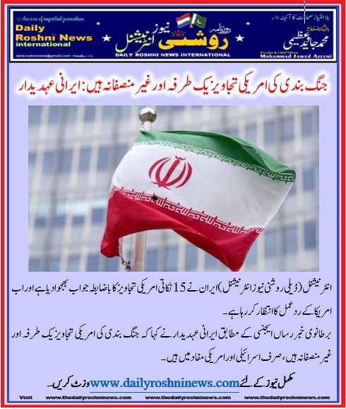 انٹرنیشنل (ڈیلی روشنی نیوز انٹرنیشنل )ایران نے 15 نکاتی امریکی تجاویز کا باضابطہ جواب بھجوادیا ہے اور اب امریکا کے ردعمل کا انتظار کر رہا ہے۔