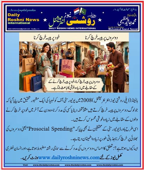 اسی طرح ہاورڈ یونیورسٹی کے محققین نے بھی پایا کہ “Prosocial Spending” یعنی دوسروں کی بھلائی پر خرچ کرنا جذباتی طور پر زیادہ اطمینان دیتا ہے۔