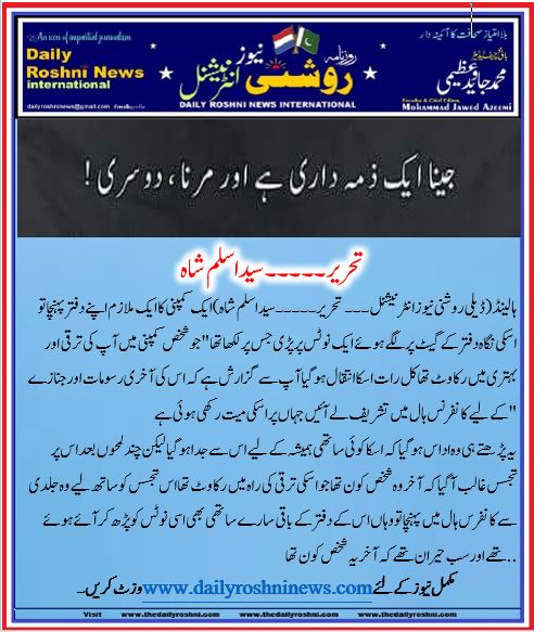 جینا ایک ذمہ داری اور مرنا دوسری۔۔۔تحریر  ۔۔۔۔۔ سید اسلم شاہ