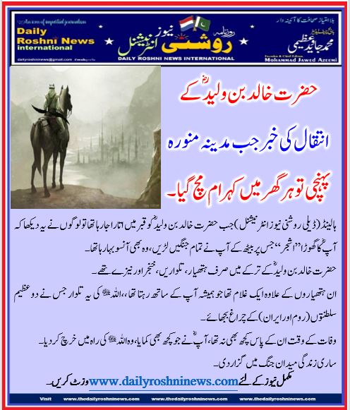 حضرت خالد بن ولیدؓ کے انتقال کی خبر جب مدینہ منورہ پہنچی تو ہر گھر میں کہرام مچ گیا ۔