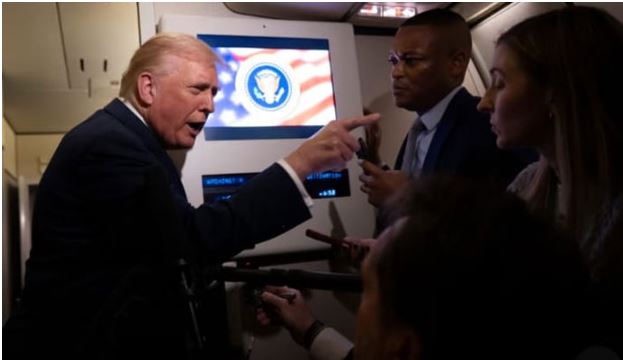 ڈونلڈ ٹرمپ کے توہین آمیز رویے سے متعلق وائٹ ہاؤس کے عہدیدار سے جب سوال کیا گیا تو ان کا کہنا تھا کہ’ اس رپورٹر نے جہاز میں اپنے کولیگز کے ساتھ نامناسب اور غیر پیشہ ورانہ سلوک اپنایا تاہم اس الزام کا کوئی ثبوت فراہم نہیں کیا گیا‘ ۔