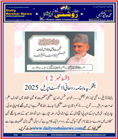 بشکریہ ماہنامہ روحانی ڈائجسٹ اپریل 2025