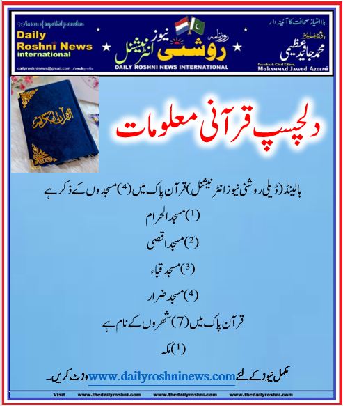 ہالینڈ(ڈیلی روشنی نیوز انٹرنیشنل)قرآن پاک میں(⁴) مسجدوں کے ذکر ہے