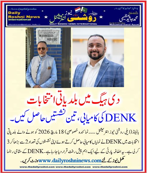 ہالینڈ(ڈیلی روشنی نیوز انٹرنیشنل ۔۔۔نمائندہ خصوصی) 18 مارچ 2026 کو ہونے والے بلدیاتی انتخابات میں DENK نے نمایاں کامیابی حاصل کرتے ہوئے اپنی نشستوں کی تعداد 2 سے بڑھا کر 3 کر لی ہے۔ یہ اضافہ پارٹی کے لیے ایک اہم پیش رفت قرار دیا جا رہا ہے۔DENK کے مقامی رہنما عدیل محمود نے اس بار ریکارڈ تعداد میں ذاتی ووٹ حاصل کیے۔ انہیں مجموعی طور پر 2,283 ذاتی ووٹ ملے، جس کے نتیجے میں وہ مسلسل تیسری دفعہ دی ہیگ سٹی کونسل کے رکن منتخب ہو گئے ہیں۔