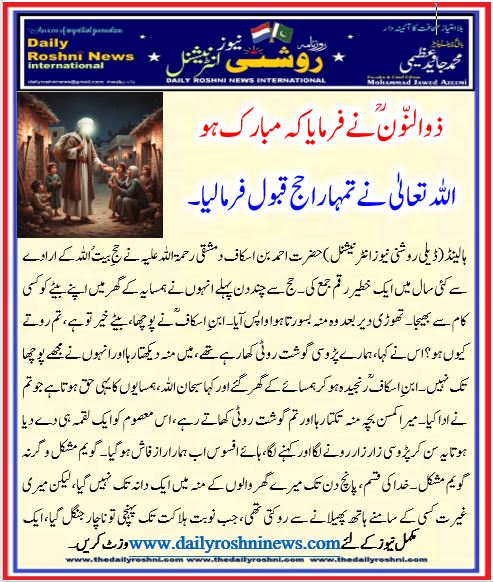 ہالینڈ(ڈیلی روشنی نیوز انٹرنیشنل )حضرت احمد بن اسکاف دمشقی رحمۃ اللہ علیہ نے حجِ بیتُ اللہ کے ارادے سے کئی سال میں ایک خطیر رقم جمع کی۔ حج سے چند دن پہلے انہوں نے ہمسایہ کے گھر میں اپنے بیٹے کو کسی کام سے بھیجا۔ تھوڑی دیر بعد وہ منہ بسورتا ہوا واپس آیا۔ ابنِ اسکافؒ نے پوچھا، بیٹے خیر تو ہے، تم روتے کیوں ہو؟ اس نے کہا، ہمارے پڑوسی گوشت روٹی کھا رہے تھے، میں منہ دیکھتا رہا اور انہوں نے مجھے پوچھا تک نہیں۔ ابنِ اسکافؒ رنجیدہ ہو کر ہمسائے کے گھر گئے اور کہا سبحان اللہ، ہمسایوں کا یہی حق ہوتا ہے جو تم نے ادا کیا۔ میرا کمسن بچہ منہ تکتا رہا اور تم گوشت روٹی کھاتے رہے، اس معصوم کو ایک لقمہ ہی دے دیا ہوتا یہ سن کر پڑوسی زار زار رونے لگا اور کہنے لگا، ہائے افسوس اب ہمارا راز فاش ہوگیا۔ گویم مشکل وگرنہ گویم مشکل۔ خدا کی قسم، پانچ دن تک میرے گھر والوں کے منہ میں ایک دانہ تک نہیں گیا، لیکن میری غیرت کسی کے سامنے ہاتھ پھیلانے سے روکتی تھی، جب نوبت ہلاکت تک پہنچی تو ناچار جنگل گیا، ایک جگہ مردہ بکری پڑی تھی، اس کا تھوڑا سا گوشت لے لیا اور اسی کو ابال کر ہم کھا رہے تھے، یہی سبب تھا کہ ہم نے آپ کے بچّے کو کچھ نہ دیا، ورنہ یہ کب ہوسکتا تھا کہ ہم گوشت روٹی کھائیں اور آپ کا بچّہ منہ تکتا رہے۔