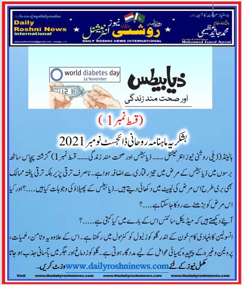 ہالینڈ(ڈیلی روشنی نیوز انٹرنیشنل ۔۔۔ ذیابیطس اور صحت مند زندگی۔۔۔ قسط نمبر1) گزشتہ پچاس ساٹھ برسوں میں ذیا بیطس کے مرض میں تیز رفتاری سے اضافہ ہوا ہے۔ ناصرف ترقی پزیر بلکہ ترقی یافتہ ممالک بھی بری طرح اس مرض کی لپیٹ میں دکھائی دیتے ہیں۔ ذیا بیطس کے پھیلاؤ کی وجوہات کیا ہیں….؟ اور کیا اس مرض کو بڑھنے سے روکا جا سکتا ہے….؟