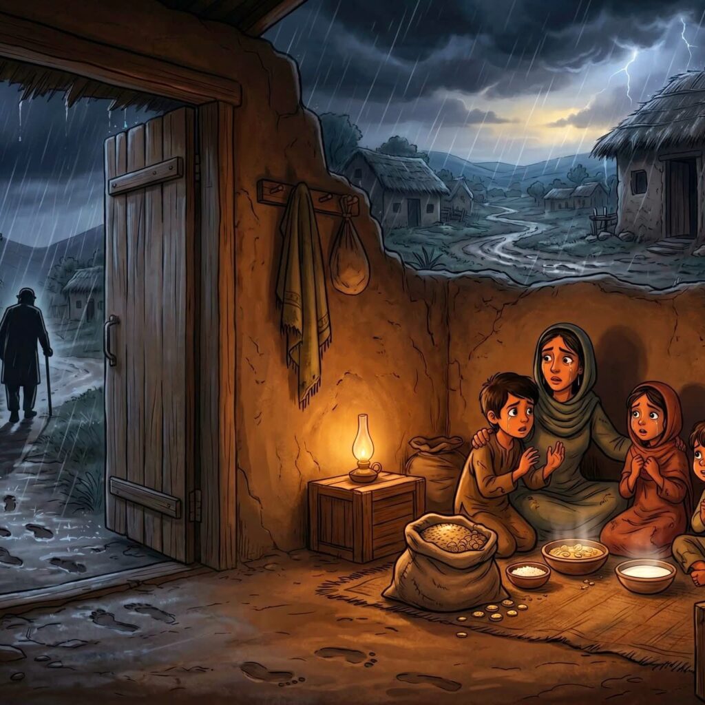 بوڑھا خاموشی سے جھونپڑی کے اندر بیٹھا تھا۔ نہ اس کے کپڑوں سے پانی ٹپک رہا تھا، نہ اس کے وجود میں جلدی یا بےچینی تھی۔ وہ ایسے بیٹھا تھا جیسے یہ طوفان اس کے لیے کوئی نئی بات نہ ہو۔