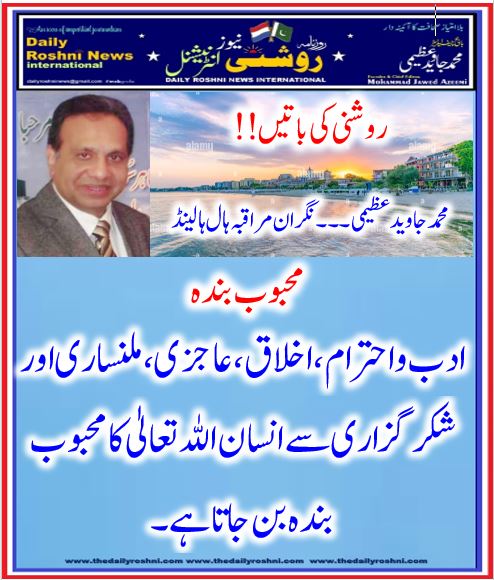 ادب و احترام،اخلاق، عاجزی، ملنساری اور شکر گزاری سے انسان اللہ تعالیٰ کا محبوب بندہ بن جاتا ہے۔