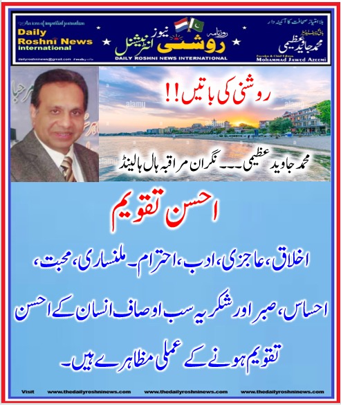اخلاق، عاجزی، ادب، احترام۔ ملنساری ، محبت ، احساس، صبر اور شکر یہ سب اوصاف انسان کے احسن تقویم ہونے کے عملی مظاہرے ہیں۔