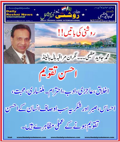 روشنی کی باتیں!!۔۔محمد جاوید عظیمی ۔۔۔نگران مراقبہ ہال ہالینڈ