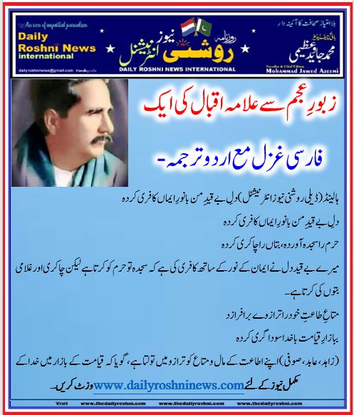 ہالینڈ(ڈیلی روشنی نیوز انٹرنیشنل )دلِ بے قیدِ من با نورِ ایماں کافری کردہ