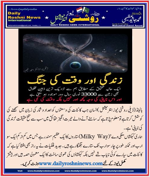 ہالینڈ(ڈیلی روشنی نیوز انٹرنیشنل )انسان جب کائنات کی وسعتوں کو اعداد و شمار کی زبان میں سمجھنے کی کوشش کرتا ہے تو معلوم پڑتا ہے کہ سامنے آنے والے حیرت انگیز حقائق میں سب سے تلخ حقیقت ‘زندگی کی نایابی’ ہے۔