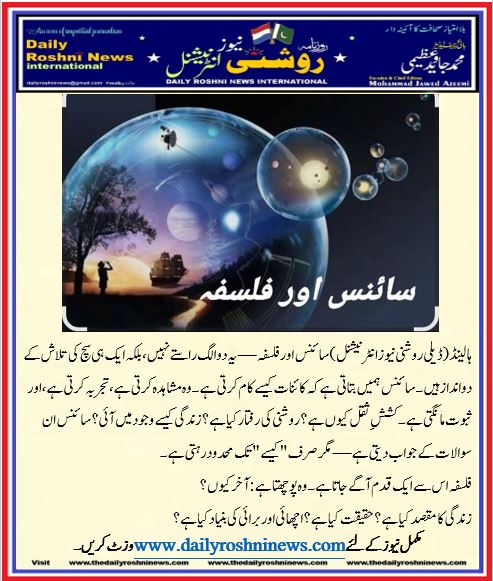 ہالینڈ(ڈیلی روشنی نیوز انٹرنیشنل )سائنس اور فلسفہ—یہ دو الگ راستے نہیں، بلکہ ایک ہی سچ کی تلاش کے دو انداز ہیں۔