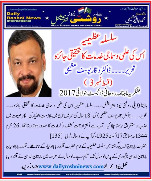 سلسلہ عظیمیہ اُس کی علمی و سماجی خدمات کا تحقیقی جائزہ ۔۔۔ تحریر۔۔۔۔ڈاکٹروقار یوسف عظیمی۔۔۔قسط نمبر3