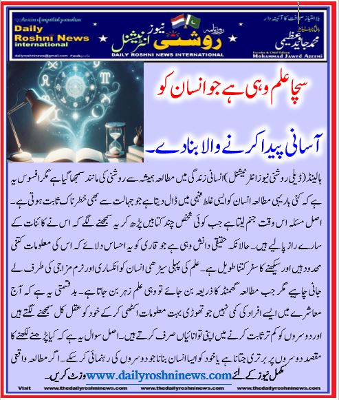 سچا علم وہی ہے جو انسان  کو آسانی پیدا کرنے والا بنا دے۔