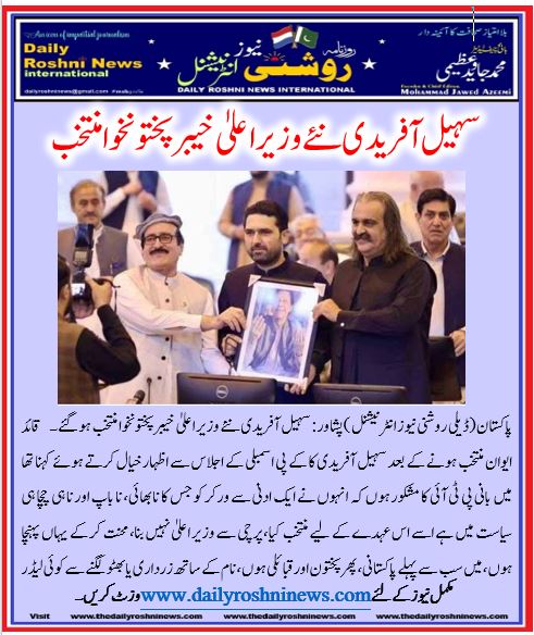 پاکستان(ڈیلی روشنی نیوز انٹرنیشنل )پشاور: سہیل آفریدی نئے وزیر اعلیٰ خیبرپختونخوا منتخب ہو گئے۔ قائد ایوان منتخب ہونے کے بعد سہیل آفریدی کا کے پی اسمبلی کے اجلاس سے اظہار خیال کرتے ہوئے کہنا تھا میں بانی پی ٹی آئی کا مشکور ہوں کہ انہوں نے ایک ادنیٰ سے ورکر کو جس کا نا بھائی، نا باپ اور نا ہی چچا ہی سیاست میں ہے اسے اس عہدے کے لیے منتخب کیا، پرچی سے وزیر اعلیٰ نہیں بنا، محنت کر کے یہاں پہنچا ہوں، میں سب سے پہلے پاکستانی، پھر پختون اور قبائلی ہوں، نام کے ساتھ زرداری یا بھٹو لگنے سے کوئی لیڈر نہیں بن جاتا۔