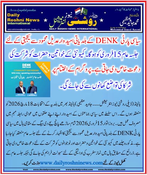 ہالینڈ(ڈیلی روشنی نیوز انٹر نیشنل ۔۔۔ جاوید عظیمی ) ہالینڈ بھر میں بلدیہ کے انتخابات 18 مارچ 2026 کو منعقد ہوں گے۔ اس سلسلے میں سیاسی جماعتوں کے امیدوار اپنے اپنے حلقوں میں عوامی رابطہ مہم میں مصروف عمل ہیں۔ بروز اتوار 15 فروری 2026 شام ساڑھے پانچ بجے دی ہیگ کے مقامی ہال میں سیاسی پارٹی