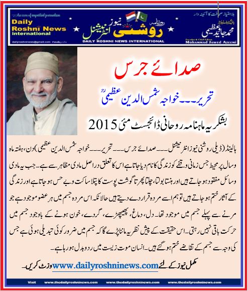 ہالینڈ(ڈیلی روشنی نیوز انٹرنیشنل ۔۔۔ صدائے جرس۔۔۔ تحریر۔۔۔خواجہ شمس الدین عظیمی )دن، ہفتہ ماہ وسال پر محیط جس زمانی وقفے کو زندگی کا نام دیا جاتا ہے اس کا تعلق دراصل مادی مظاہر سے ہے۔ جب یہ مادی وسائل مفقود ہو جاتے ہیں اور ہنستا بولتا، چلتا پھرتا گوشت پوست کا پتلا ساکت و بے حس ہو جاتا ہے اور زندگی کے آثار ختم ہو جاتے ہیں تو ہم اسے مردہ قرار دے دیتے ہیں حالانکہ اس مردہ جسم میں ہر عضو موجود ہے جو مرنے سے پہلے جسم میں موجود تھا۔ دل، دماغ، پھیپھڑے، گردے، خون ہونے کے باوجود جسم میں حرکت باقی نہیں رہتی۔ اس حقیقت کے پیش نظر یہ ماننا پڑے گا کہ جسم میں ضرور کوئی تبدیلی ہوئی ہے جس کی وجہ سے جسم کے تقاضے ختم ہو گئے ہیں۔ انسان موت زیست میں رد و بدل ہو رہا ہے۔ زیست کو سمجھنے کیلئے ہمارے پاس وہ اعمال و افکار اور حرکات و سکنات ہیں جو ہم زندگی بھر کرتے رہتے ہیں۔ حرکت جسمانی وجود کے ساتھ ہوتی ہے اور ایک ایسی حالت بھی طاری ہوتی ہے کہ جسمانی وجود معطل ہو جاتا ہے لیکن حرکات و سکنات اپنی پوری رعنائیوں کے ساتھ قائم رہتی ہیں۔ انسانی زندگی کا دارو مدار محض اور محض اطلاع یا خیال کے اوپر ہے۔ ہم جب زندگی میں کام کرنے والے تقاضوں کا تجزیہ کرتے ہیں تو انکشاف ہوتا ہے کہ دراصل زندگی میں کام آنے والا ہر جذبہ ایک خبر یا اطلاع ہے۔ زندگی کا کوئی رخ ہو ، صحت مندی کا رخ ہو ، بیماری کا ہو ، پریشانی کا ہو، خوشی کا ہو ، احساس کمتری یا احساس برتری کا رخ ہو۔ یہ تمام اعمال، تاثرات، جذبات و غیر ہ خیالات کے تابع ہیں۔ کوئی بھی اطلاع یا کسی بھی شئے کا علم یا وقت ہمیں لا زمانیت سے موصول ہوتا ہے اور یہ ہی لازمانیت نت نئی اطلاعیں زمانیت (وقت) کے اندر ارسال کرتی رہتی ہیں۔ لا زمانیت موجودات یا کائنات کی ہیں Base ہے۔ اگر ہم لا زمانیت کو ایک نقطہ سے تشبیہ دیں تو اس طرح کہا جاسکتا ہے کہ نقطہ میں کائنات کا یکجائی پروگرام نقش ہے۔ لہروں کے ذریعہ اس نقطہ سے جب کائنات کا یکجائی پروگرام نشر ہوتا ہے تو انسان کے حافظہ سے ٹکراتا اور بکھرتا ہے، بکھرتے ہی ہر ہر مختلف شکلوں اور صورتوں میں ہنستی بولتی، چلتی پھرتی، گاتی بجاتی، تصویر بن جاتی ہے۔ انسانی زندگی کا دارو مدار اطلاع پر ہے۔ موت کے بعد بھی اطلاعات کا سلسلہ جاری رہتا ہے، مرنے کا مطلب یہ ہر گز نہیں ہے کہ آدمی کا وجود تحلیل ہو گیا یا آدمی بنیادی طور پر ختم ہو گیا۔ موت کا مطلب یہ ہے کہ انسانی جسم کا رشتہ روح سے منقطع ہو گیا۔ مرنے کا مفہوم یہ لیا جاتا ہے کہ آدمی ختم ہو گیا ہے، حالانکہ انتقال ہونے کا مطلب ختم ہونا نہیں بلکہ ایک عالم سے دوسرے عالم میں منتقل ہو جاتا ہے۔ یعنی آدمی گوشت پوست کے جسم کو چھوڑ کر دوسرے عالم میں منتقل ہو گیا۔ لفظ مرنے کا ترجمہ بھی امر ہونا ہے۔ کسی صاحب علم ہستی کا قول ہے کہ موت روشنی کو ختم کرنا نہیں ہے، یہ صرف چراغ کو بجھانا ہے کیونکہ صبح ہو گئی ہے”۔ انسان کی زندگی مادی جسم کے فنا ہونے کے بعد ختم نہیں ہوتی۔ آدمی جب مر جاتا ہے تو دراصل وہ غیب کی اس دنیا میں چلا جاتا ہے جہاں اس کے اوپر سے زماں اور مکان کی پابندیاں ٹوٹ جاتی ہیں۔ انسانی روح موت کے بعد مادی جسم کو خیر باد کہہ کر روشنی کا بنا ہوا جسم اختیار کر لیتی ہے اور روشنی کے جسم کے ذریعے اس کی حرکات جاری رہتی ہیں۔ اس کی مثال خواب کی حالت ہے۔ خواب میں مادی حواس روشنی کی دنیا میں کام کرنے والے حواس سے مغلوب ہو جاتے ہیں لیکن ختم نہیں ہوتے۔ اس وقت ہماری کیفیات موت سے مشابہت رکھتی ہیں۔ لیکن جب مادی جسم کے ۔ سے حواس پر روشنی کے جسم کے جو اس کا اس طرح غلبہ ہو جائے کہ مادی جو اس کا روشنی کے حواس پر دوبارہ غالب آنا ممکن نہ ہو تو مادی جسم تعطل کا شکار ہو کر بیکار ہو جاتا ہے اس کا نام موت ہے۔ اب ہم یوں کہیں گے کہ آدمی اس عارضی زندگی کو چھوڑ کر ایسے عالم میں چلا گیا ہے جہاں اسے دنیا سے زیادہ طویل عرصے تک رہنا ہے۔ مرنے کے بعد بھی آدمی ان جذبات و احساسات میں زندگی گزارتا ہے جن جذبات و احساسات میں اس دنیا میں زندگی گزار چکا ہے۔ فرق صرف اتنا ہے کہ یہ گوشت پوست کا جسم مٹی بن جاتا ہ