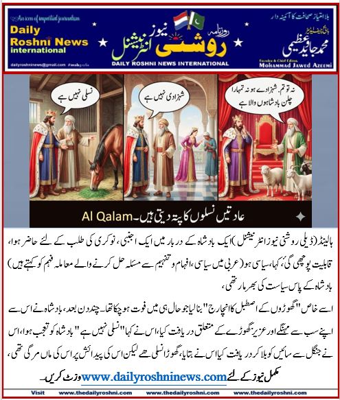 ہالینڈ(ڈیلی روشنی نیوز انٹرنیشنل )ایک بادشاہ کے دربار میں ایک اجنبی ، نوکری کی طلب کے لئے حاضر ہوا، قابلیت پوچھی گئ، کہا ،سیاسی ہو (عربی میں سیاسی، افہام و تفہیم سے مسئلہ حل کرنے والے معاملہ فہم کو کہتے ہیں) بادشاہ کے پاس سیاست کی بھر مار تھی،