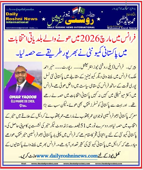 فرانس میں مارچ 2026 میں ھونے والے بلدیاتی انتخابات میں پاکستانی کمیونٹی نے بھرپور طریقے سے حصہ لیا ـ