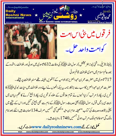 ہالینڈڈ(یلی روشنی نیوز انٹرنیشنل )رسول اللہ ﷺ کی وفات 632 عیسوی میں ہوئی اور خلافت راشدہ کے بعد عالم اسلام میں اموی خلافت قائم ہوئی