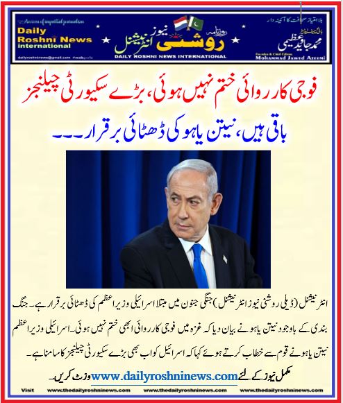فوجی کارروائی ختم نہیں ہوئی، بڑے سکیورٹی چیلنجز باقی ہیں، نیتن یاہوکی ڈھٹائی برقرار