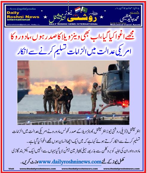 انٹرنیشنل (ڈیلی روشنی نیوز انٹرنیشنل )وینزویلا کے صدر نکولس مادورو نے امریکی عدالت میں الزامات تسلیم کرنے سے انکار کرتے ہوئےکہا ہےکہ میں ایک اچھا انسان ہوں مجھے اغوا کیا گیا ہے۔