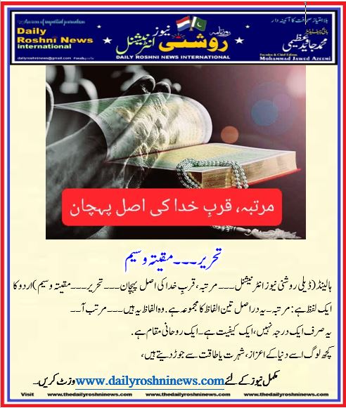 ہالینڈ(ڈیلی روشنی نیوز انٹرنیشنل۔۔۔ مرتبہ، قربِ خدا کی اصل پہچان۔۔۔ تحریر۔۔۔مقیتہ وسیم )اردو کا ایک لفظ ہے: مرتبہ۔