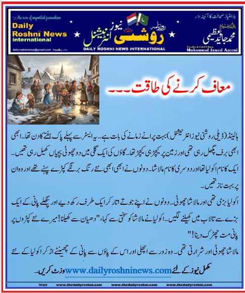 ہالینڈ(ڈیلی روشنی نیوز انٹر نیشنل )بہت پرانے زمانے کی بات ہے۔ یہ ایسٹر سے پہلے پاک ہفتے کا دن تھا۔ ابھی ابھی برف پگھل رہی تھی اور زمین پر کیچڑ ہی کیچڑ تھا۔ گاؤں کی ایک گلی میں دو چھوٹی بچیاں کھیل رہی تھیں۔ ایک کا نام اکولیا تھا اور دوسری کا نام مالاشا۔ دونوں نے ابھی ابھی نئے رنگ برنگے کپڑے پہنے تھے اور وہ ان پر بہت ناز تھیں۔