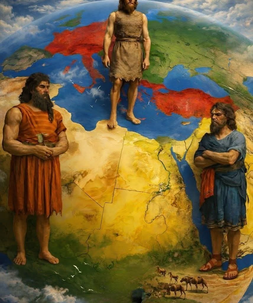 اسی طرح زمین پر نئی انسانی آبادی کا آغاز انہی تین بیٹوں کی نسل سے ہوا، اور وقت کے ساتھ دنیا کے مختلف خطوں میں اقوام و تہذیبیں وجود میں آئیں۔