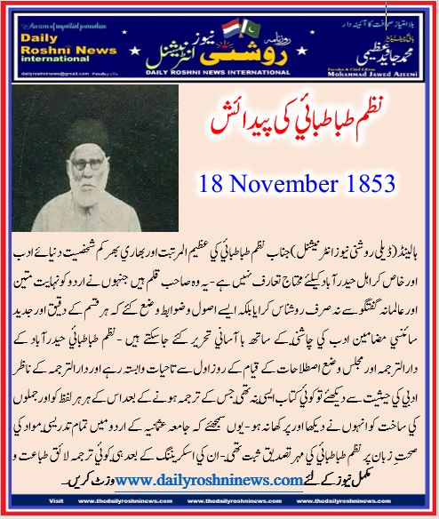 جناب نظم طباطبائي کي عظيم المرتبت اور بھاري بھر کم شخصيت دنيائے ادب اور خاص کر اہل حيدرآباد کيلئے محتاج تعارف نہيں ہے – يہ وہ صاحب قلم ہيں جنہوں نے اردو کو نہايت متين اور عالمانہ گفتگو سے نہ صرف روشناس کرايا بلکہ ايسے اصول و ضوابط و ضع کئے کہ ہر قسم کے دقيق اور جديد سائنسي مضامين ادب کي چاشني کے ساتھ با آساني تحرير کئے جاسکتے ہيں -نظم طباطبائي حيدرآباد کے دارالترجمہ اور مجلس وضع اصطلاحات کے قيام کے روز اول سے تاحيات وابستہ رہے اور دارالترجمہ کے ناظر ادبي کي حيثيت سے ديکھئے تو کوئي کتاب ايسي نہ تھي جس کے ترجمہ ہونے کے بعد اس کے ہر ہر لفظ کو اور جملوں کي ساخت کو انہوں نے ديکھا اور پرکھا نہ ہو – يوں سمجھئے کہ جامعہ عثمانيہ کے اردو ميں تمام تدريسي مواد کي صحتِ زبان پر نظم طباطبائي کي مہر تصديق ثبت تھي – ان کي اسکريننگ کے بعد ہي کوئي ترجمہ لائق طباعت و اشاعت سمجھا جاتا تھا -نقد و نظر ‘ شاعري ‘ نثر نگاري ‘ ترجمہ ‘ قواعد ‘ عروض ‘ ضائع بدائع يا اور کوئي شعبہ زبان ايسا نہ تھا جس ميں نظم صاحب کا اجتہاد داخل نہ ہو – ان کے زبان سے متعلق کسي بھي فيصلے کو ادبيات کي دنيا ميں کسي کي جرات نہيں تھي کہ اس کي ترديد کرتا يا اس کے بر خلاف رائے ديتا – ہماري زبان ميں جناب نظم طباطبائي ايک طرح سے مجتہد جامع الشرائظ تھے – جناب نظم طباطبائي کا سلسلہ نسب حسني سادات سے ملتا ہے – امام حسن ط‘ کے پوتے جناب اسمعٰيل تھے جن کا لقب ’’طبا طبا‘‘ تھا اس لئے يہ سلسلہ طباطبائي کے نام سے موسوم ہے – ان کے اجداد ايران سے ہندوستان آئے اور لکھنؤ ميں آکر آباد ہوئے – ان کي والدہ نواب معتمد الدولہ سيد محمد خان عرف آغا مير کے خاندان کي تھيں اور ان کے والد سيد مصطفےٰ حسين دربار اودھ سے وابستہ تھے – 18نومبر 1853ء کو محلہ حيدرگنج قديم ميں بروز جمعہ نظم طباطبائي پيدا ہوئے – سيد علي حيدر نام تھا- کبھي نظم اور کبھي حيدر تخلص کرتے تھے – علم و فضل ميں يہ خاندان لکھنؤ ميں مشہور تھا – نظم صاحب کي تعليم ايک مکتب ميں ہوئي جہاں ملاباقر جيسے عالم ان کو پڑھاتے تھے عربي ادب اور فقہ ميں استعداد علمي کا آغاز انہيں بزرگ اساتذہ کي بدولت ہوا – فارسي اور علم عروض کي تعليم انہوں نے ميندولال راز سے حاصل کي – 1868ء ميں پندرہ برس کي عمر ميں يہ اپني والدہ کے ساتھ مٹيا برج (کلکتہ ) چلے آئے جہاں واجد علي شاہ کي بدولت ايک چھوٹا لکھنؤ آباد ہوگيا تھا – يہاں مولانا محمد علي مجتہد العصر سے درسِ نظامي منطق اور فلسفہ پڑھا اور اس طرح اپني تعليم مکمل کي – پھر وہ مٹيا برج ميں ہي واقع شہزادگانِ اودھ کے لئے قائم کردہ مدرسہ ميں ملازم ہوگئے – مدرسہ کے انگريزي کے استاذ محمد عسکري سے انہوں نے انگريزي زبان سيکھي اور اسکے بدلے عسکري صاحب کو عربي پڑھائي -واجد علي شاہ کے انتقال کے بعد مدرسہ ٹوٹ گيا تو ان کا ذريعہ معاش ختم ہوگيا – پھر مولوي سيد افضل حسين لکھنؤي ‘ چيف جسٹس حيدرآباد کي دعوت پر 1887ء ميں نظم صاحب حيدرآباد آگئے – افضل حسين صاحب سے ان کي ملاقات اس وقت ہوئي تھي جب وہ اس سے قبل تفريحاً حيدرآباد آئے تھے – کسي مستقل معاشي وسيلہ کے فراہم ہونے تک افضل حسين صاحب نے اپنے فرزند آغا سيد حسين کي اتاليقي ان کے سپرد کي – 1889ء ميں نواب عمادالملک سيد حسين بلگرامي نے جو ناظم تعليمات تھے نظم صاحب کو مدرسہ اعزہ ميں عربي کا استاد مقرر کرديا – 1890ء ميں کتب خانہ آصفيہ کے پہلے مہتمم بنائے گئے – اس کي تنظيم اور توسيع ميں نظم صاحب نے بڑي دلچسپي لي – اس وقت يہ کتب خانہ اس جگہ تھا جہاں پر اب صدرٹپہ خانہ عابد روڈ سرکل پر ہے – اسکے بعد مدرسہ عاليہ ميں عربي فارسي کے استاد کي حيثيت سے ان کا تقرر ہوا -پھر ان کا تبادلہ نظام کالج کرديا گيا جہاں پہلے عربي اور فارسي پڑھاتے رہے پھر اردو کے پروفيسر بنادئے گئے – 1912ء ميں ايک سال سے کچھ زيادہ عرصہ تک شہزادگان آصفيہ کے اتاليق رہے پھر نظام سابع کے حکم سے 1918ء نظم صاحب کو صرفِ خاص مبارک سے جامعہ عثمانيہ کے دارالترجمہ منتقل کرديا – يہاں پر ان کي تدريسي مشغوليات ختم ہوئيں اور علمي