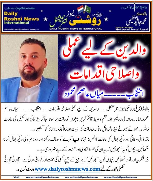 ہالینڈ(ڈیلی روشنی نیوز انٹرنیشنل ۔۔۔ والدین کے لیے عملی اصلاحی اقدامات۔۔۔ انتخاب ۔۔۔۔۔ میاں عاصم محمود)1. روزانہ کی روٹین اور نظم و ضبط قائم کریں: