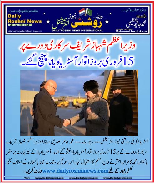*وزیراعظم شہباز شریف سرکاری دورے پر 15 فروری بروز اتوار آسٹریا ویانا پہنچ گئے*۔