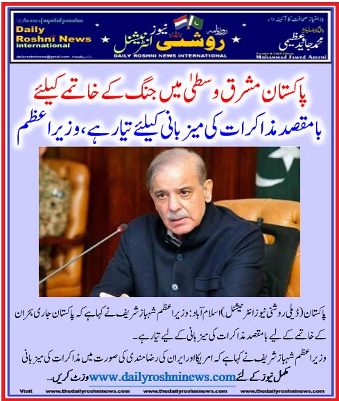 پاکستان (ڈیلی روشنی نیوز انٹرنیشنل )اسلام آباد: وزیراعظم شہباز شریف نےکہا ہےکہ پاکستان  جاری  بحران کے خاتمےکے لیے بامقصد  مذاکرات کی  میزبانی کے لیے تیار ہے۔