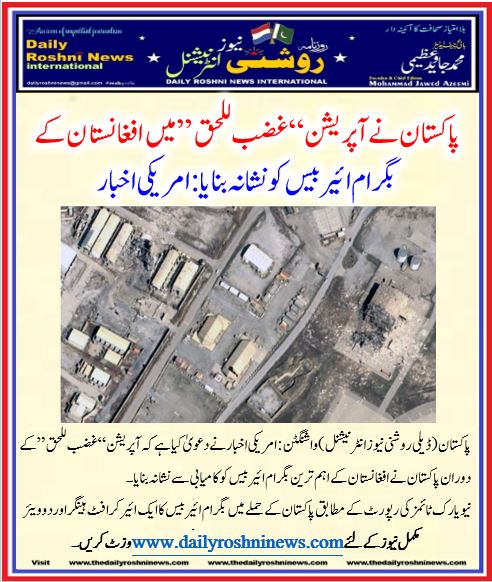 پاکستان(ڈیلی روشنی نیوز انٹرنیشنل)واشنگٹن:  امریکی اخبار نے دعویٰ کیا ہے کہ آپریشن “غضب للحق” کے دوران پاکستان نے افغانستان کے اہم ترین بگرام ائیربیس کو کامیابی سے نشانہ بنایا۔