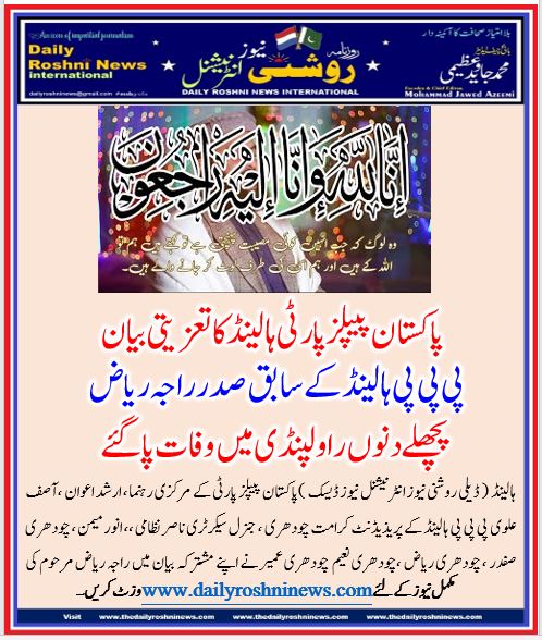 پی پی پی ہالینڈ کے سابق صدر  راجہ ریاض  پچھلے دنوں راولپنڈی میں وفات پا گئے