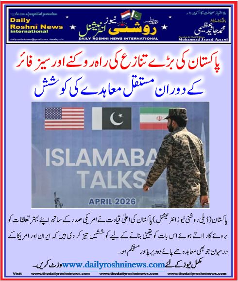 پاکستان(ڈیلی روشنی نیوز انٹرنیشنل )پاکستان کی اعلیٰ قیادت نے امریکی صدر کے ساتھ اپنے بہتر تعلقات کو بروئے کار لاتے ہوئے اس بات کو یقینی بنانے کے لیے کوششیں تیز کر دی ہیں کہ ایران اور امریکا کے درمیان جو بھی معاہدہ طے پائے وہ دیرپا اور مستحکم ہو۔