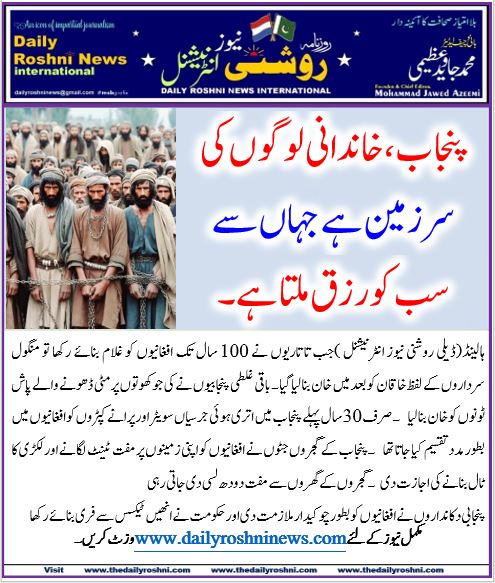 ہالینڈ(ڈیلی روشنی نیوز انٹرنیشنل )جب تاتاریوں نے 100 سال تک افغانیوں کو غلام بنائے رکھا تو منگول سرداروں کے لفظ خاقان کو بعد میں خان بنا لیا گیا
