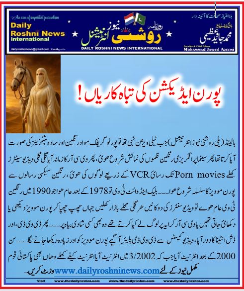 ہالینڈ(یلی روشنی نیوز انٹرنیشنل )جب ٹیلی ویژن نہی تھا تو پورنوگریفک مواد رنگین  اور سادہ میگزینز کی صورت آیا کرتا تھا پھر سینما پر انگریزی رنگین فلموں کی نمائش شروع ھوئ ، پھر وی سی آر کا زمانہ آیا گلی گلی ویڈیو سینٹرز کھلے Porn movies تک رسائ VCR کے زریعے لوگوں کی ھوئ ، رنگین سیکسی رسالوں سے پورن موویز کا سلسلہ شروع ھوا۔۔۔ بلیک اینڈ وائٹ ٹی وی تو 1978 کے بعد عام ھوا جو 1990 میں رنگین ٹی وی عام ھوے تو ویڈیو سنٹرز کی دوکانیں ھر گلی محلے بازار کھلیں جہاں چھپ چھپا کر پورن موویز دیکھی یا دکھائ جاتی تھیں یا وی سی آر کرایہ پر لوگ لے کیا کرتے تھے وہ بھی کسی شادی بیاہ پر ۔۔۔پھر ڈی وی ڈی ، اور ڈش انٹینا کا دور آیا ، ویڈیو کیسٹس سے ڈی وی ڈی پلیئر آگیے پورن موویز کو اور زیادہ دیکھا جانے لگا۔۔۔ سن 2000 کے بعد انٹرنیٹ آیا جب کہ 2002/3 میں انٹرنیٹ آیا انٹرنیٹ کیفے کھلے وھاں بھی پاکستانی قوم انٹرنیٹ کیبن کے اندر انٹرنٹ کیفے میں جا کر پورن موویز ھی دیکھا کرتی تھی ۔۔ جہان سے پورن موویز کے منفی اثرات ھمارے معاشرے میں نوٹس کیے جانے لگے۔