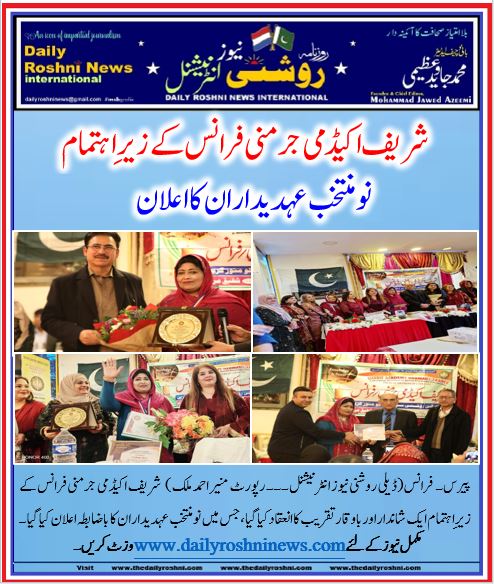 شریف اکیڈمی جرمنی فرانس کے زیرِ اہتمام ایک شاندار اور باوقار تقریب کا انعقاد کیا گیا، جس میں نو منتخب عہدیداران کا باضابطہ اعلان کیا گیا۔ یہ تقریب خوشبوؤں کے شہر پیرس میں منعقد ہوئی اور علمی، ادبی و سماجی شخصیات کی بھرپور شرکت نے اس کی اہمیت کو مزید بڑھا دیا۔