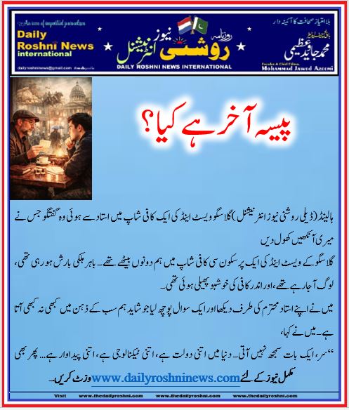 “سر، ایک بات سمجھ نہیں آتی۔ دنیا میں اتنی دولت ہے، اتنی ٹیکنالوجی ہے، اتنی پیداوار ہے… پھر بھی غربت کیوں ختم نہیں ہوتی؟ آخر پیسہ ہے کیا؟”