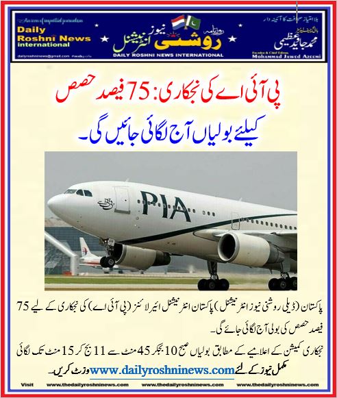 پاکستان انٹرنیشنل ائیرلائنز  (پی آئی اے) کی نجکاری کے لیے 75 فیصد حصص کی بولی  آج لگائی جائے گی۔